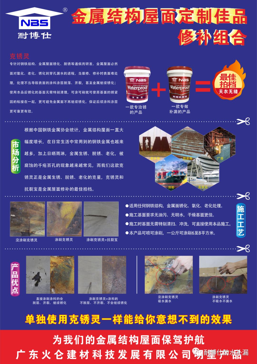 克銹靈是我公司特別研發(fā)的一款專治銹的產(chǎn)品,它是一款高滲透性、水溶性液體。專針對(duì)鋼鐵結(jié)構(gòu)、金屬屋面銹化、脫銹等通病而研發(fā)。金屬屋面必然面對(duì)氧化、老化、銹化到穿孔漏水的進(jìn)程,當(dāng)維修、修補(bǔ)時(shí)表面難處理,處理不當(dāng)導(dǎo)致表面的涂料涂層脫落、開(kāi)裂,甚至金屬繼續(xù)銹化;使用本品后銹化的基面無(wú)需特別清理,可涂可刷就可使原基面的銹緊固的粘接在一起,更可避免金屬面不再繼續(xù)銹化,保證后續(xù)涂料涂層更可靠更有效。